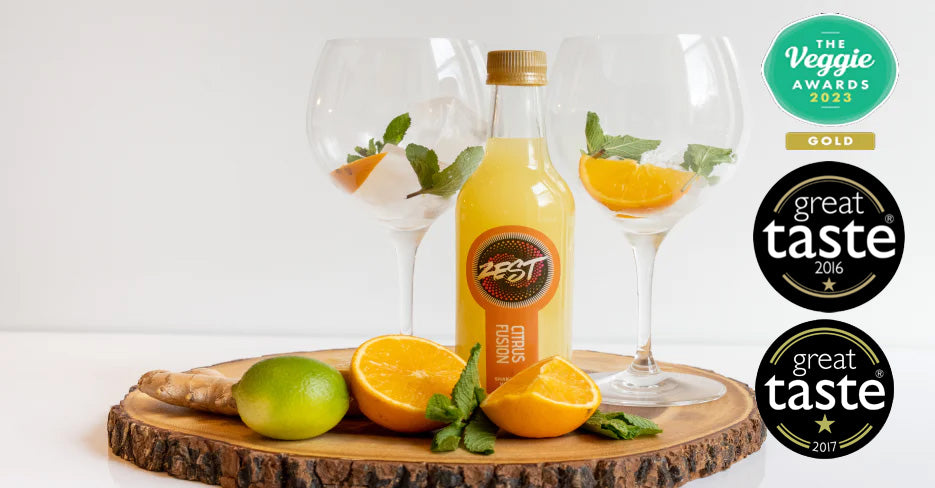 Fiery and satisfying! Made from a traditional Jamaican recipe! 100% natural non-carbonated Ginger Beer. We use cold-pressed root ginger combined with a touch of pure vanilla extract and cold-pressed lime for a genuinely spicy taste with a fiery kick. Non-alcoholic, free from all artificial ingredients, sweeteners and preservatives, Suitable for vegetarians and vegans. SERVING SUGGESTIONS Serve chilled or with ice. Heat up for a spicy...Citrus Fusion